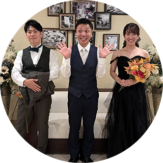 事前の顔合わせで新郎新婦様やゲストの雰囲気を把握し 、マニュアル通りではない、会場が一体となるアットホームな空間を創り上げます 。